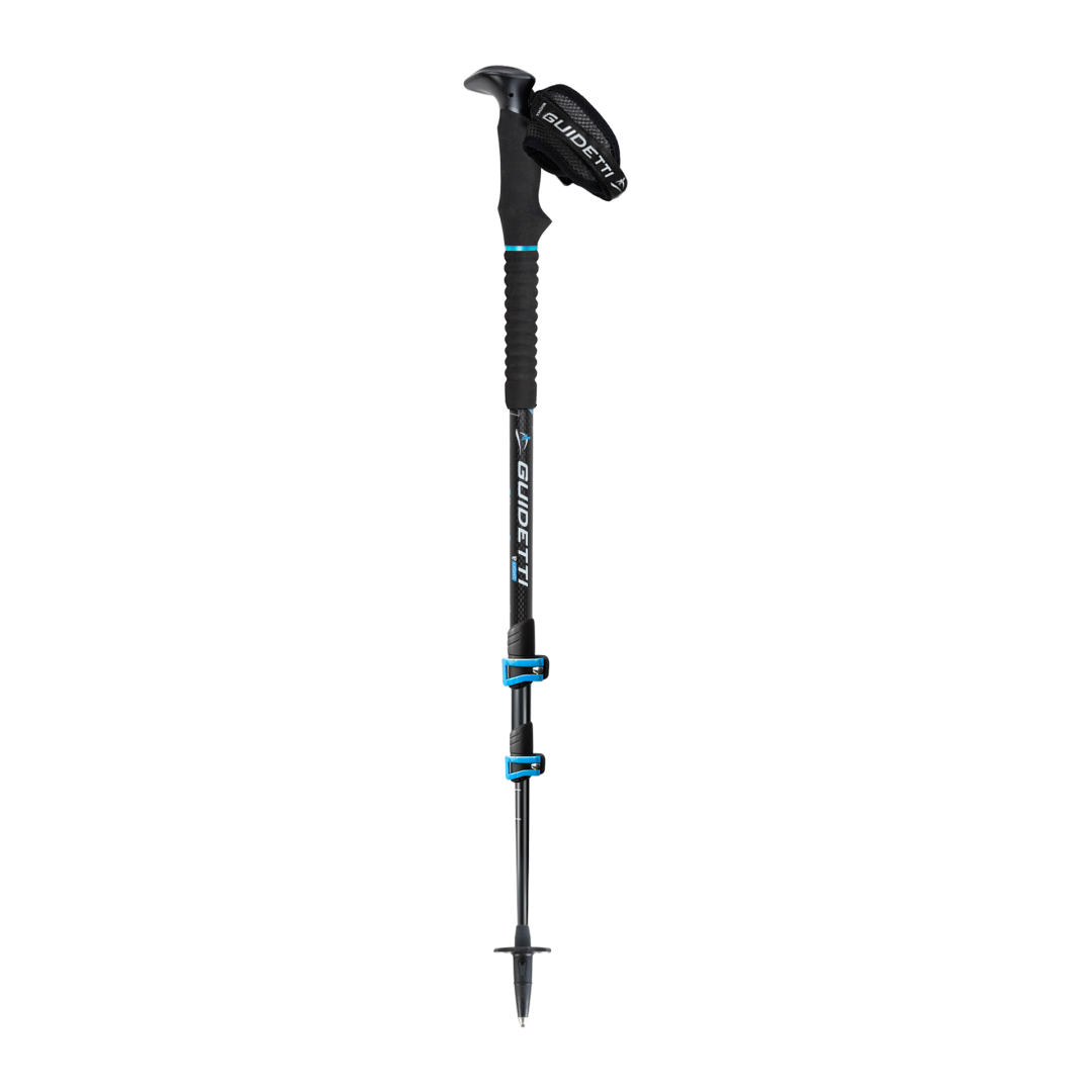 The MK2 GUIDETTI hiking poles are high-performance trekking poles with optimized grip and durability in summer and winter. The B-LIGHT CARBON MK2 - SAPPHIRE or RUBY is an adjustable hiking pole made of 100% carbon.