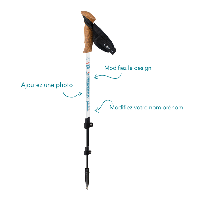Guidetti est le seul fabricant à pouvoir faire de la personnalisation de bâtons de randonnée, grâce à son configurateur en ligne. Simple d'utilisation, vous êtes autonome dans la réalisation de vos projets. Mais nous sommes évidemment à votre disposition en cas de besoin.